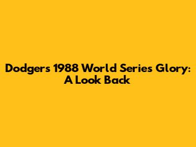 Dodgers' 1988 World Series Glory: A Look Back