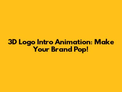 3D Logo Intro Animation: Make Your Brand Pop!
