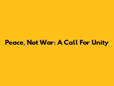 Peace, Not War: A Call For Unity
